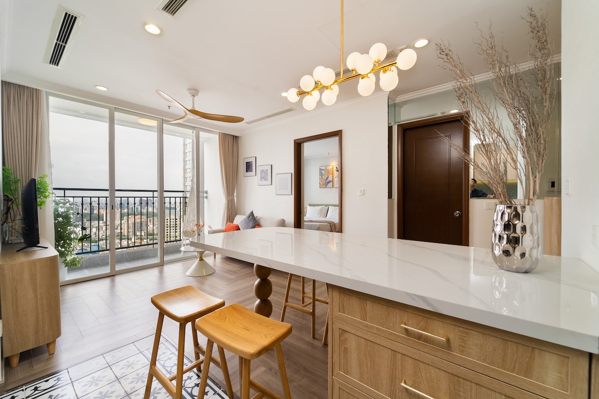 Luxury 3-Bedroom Apartment with Stunning Panoramic View of Saigon | Vincom Đồng Khởi Experience the best of Saigon from this spacious and upscale 3-bedroom apartment located in the heart of the city’s most prestigious address — Vincom Đồng Khởi. Perfect for families, business travelers, or groups seeking both comfort and sophistication, this residence offers breathtaking views of the Saigon skyline and the Saigon River through floor-to-ceiling windows.