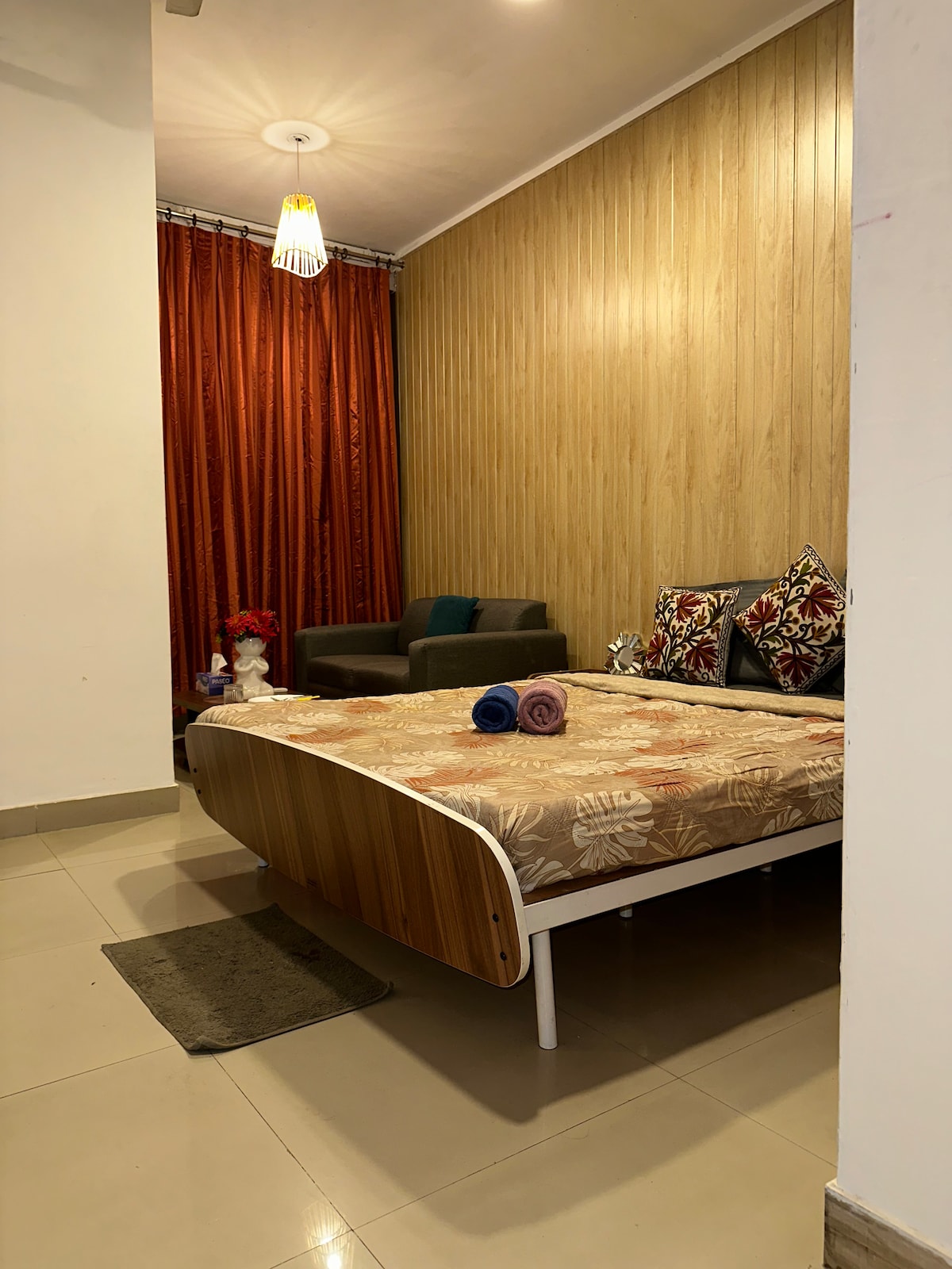 豪華、精緻、品味高雅、適合情侶入住的單間公寓。坐落在古爾岡市中心,距離熱門的高爾夫球場路、網絡城、帕拉斯醫院和各種著名的餐廳只有幾分鐘的路程,步行1分鐘即可抵達。靠近Vyapar Kendra和Galleria Mall。與地鐵站連接良好。距離古爾岡所有著名酒吧僅一步之遙。獨立私人公寓,位於有警衛的安全建築物內。
