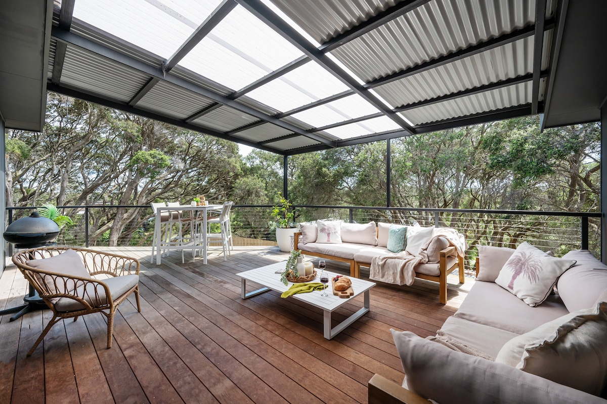 Onshore Retreat is set on the beautiful natural coastline of St Andrews Beach, only five minutes stroll to the water’s edge and surrounded by 6800sqm of natural bushland. Our Back Beach Lodge is perfect for families, featuring 1 king 1 queen size beds and 2 single beds suitable for young children.