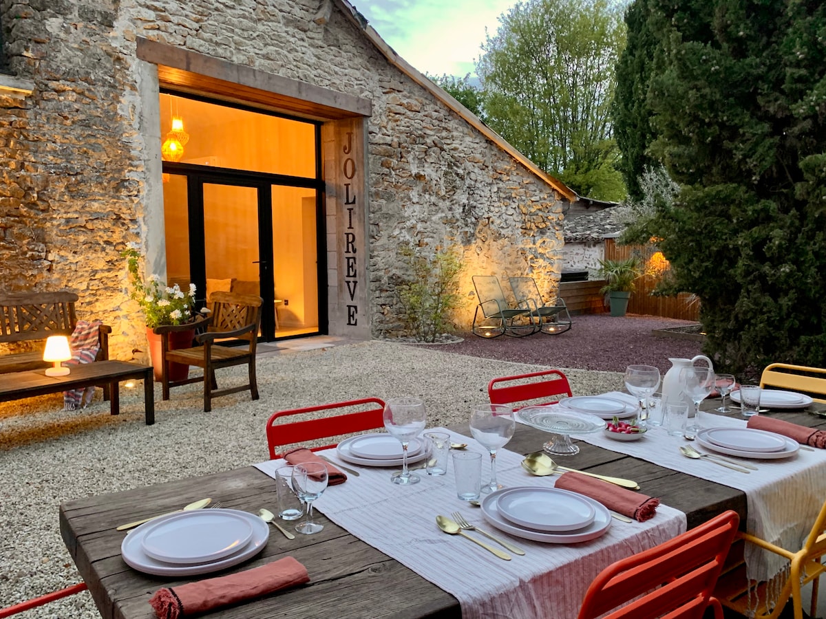 在這片寧靜的綠洲中休息放鬆。 地理位置優越,開車 10 分鐘即可抵達 FUTUROSCOPE Aquascope ARENA,8 分鐘即可抵達 A10 高速公路 Futuroscope 28 號出口,5 分鐘即可抵達超市。 Forge petit chapron :翻新建築,鄉村,靠近普瓦捷 - 免費停車位。 真正的設備齊全的廚房(烤箱、抽油煙機、電磁爐、冰箱、餐具)、主臥室 1 張床 x2(140 公分)、1 間客廳 + 廚房 + 客廳,配有 2 人沙發床(160 公分)+ SDD 和樓上廁所