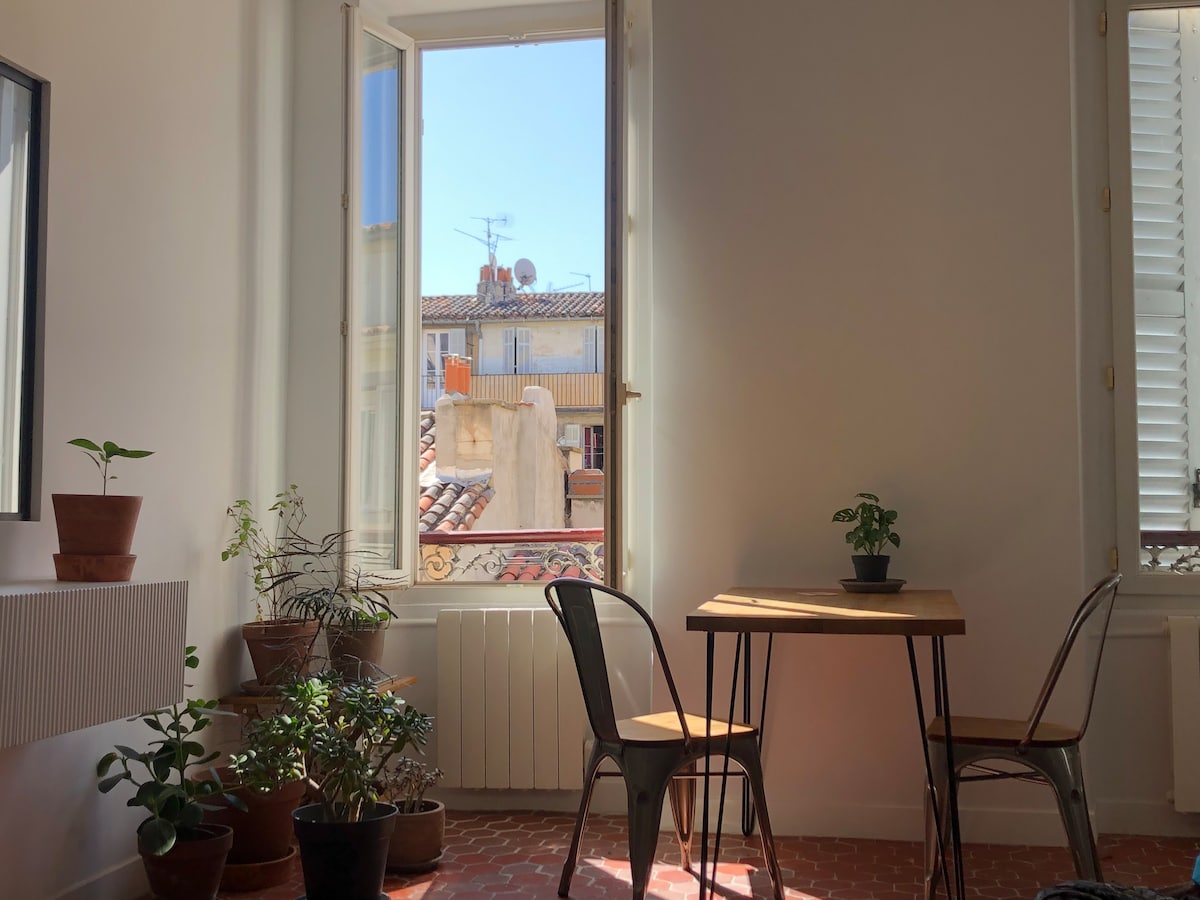 Rooftop privé en plein Marseille ☀️ 25 m² de terrasse rien que pour vous, au calme, ensoleillé du matin au soir. Petit-déjeuner au soleil, apéro au coucher du soleil… ici, on vit dehors. Studio lumineux et climatisé, parfait pour 2 personnes. ✔ 15 min gare Saint-Charles ✔ 15 min Vieux-Port ✔ Tramway à 50 m ✔ Climatisation (indispensable l’été) ✔ Wi-Fi rapide ✔ TV connectée ✔ Linge fourni Vous posez vos valises, tout est prêt. Accueil en personne ou entrée autonome.