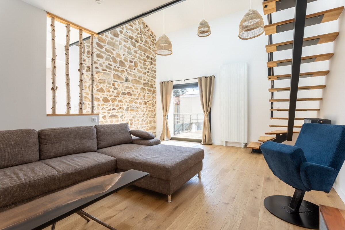 Maison de caractère de 80 m2 dans un village au calme. Vous serez séduits par sa situation au bout d'une impasse qui en fait un lieu paisible proche de la nature, par ses nombreuses terrasses qui vous permettront de profiter de l'ombre ou du soleil en fonction de votre humeur, et par sa situation géographique au coeur de la chaîne des Puys et tout près du massif du Sancy, de Clermont-Ferrand et du Zénith. Idéal pour une famille (sauf avec des enfants en bas âge) ou pour des randonneurs.