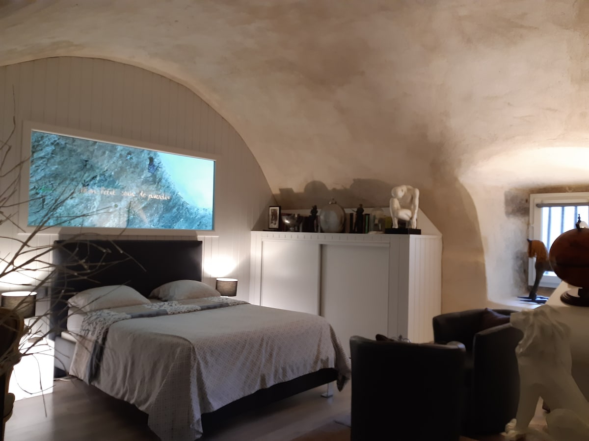 歡迎來到拱頂套房,這是一個獨特的空間,有獨立入口(低矮和非典型的門)和私人露臺,位於一棟建於1800年的建築物中。 這裡沒有Wi-Fi ,但4G覆蓋率非常好:是遠離喧囂和享受寧靜的理想場所。 我們住在房子的上層,如有需要,我們會提供服務,同時尊重您的隱私。 🔹 無法在臥室烹飪