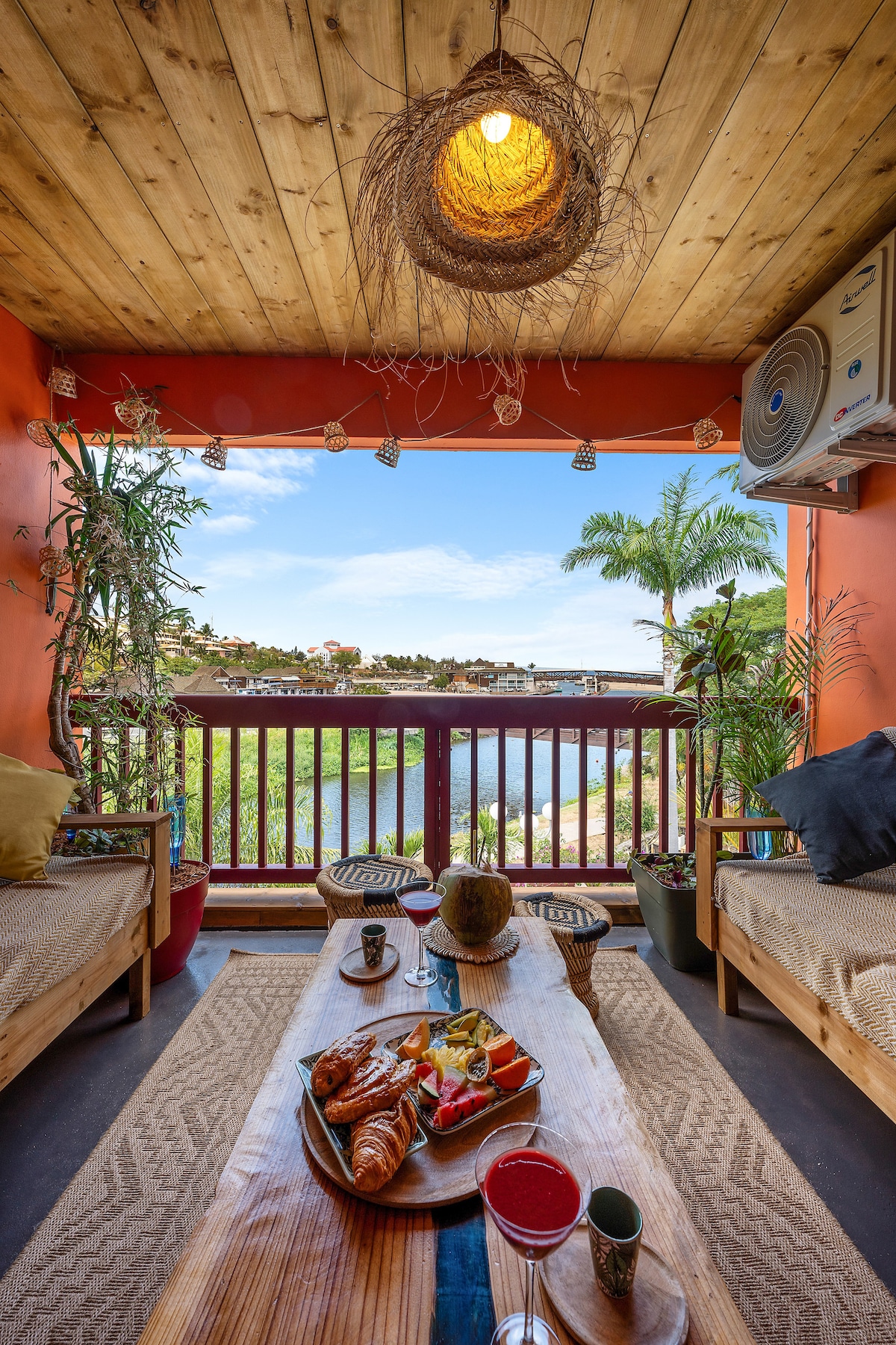 想像一下,在陽台上,啜飲一杯冰涼的潘趣酒,躺在日光浴床上,除了椰子樹園之外,您和大海之間一無所有。嗯......海浪的聲音,一本好書,您真的在度假。想要散步,去看鯨魚和海豚,房子位於島嶼的中心,四通八達。想吃天竺葵布里歐配香草茶,步行 3 分鐘即可抵達。快來找我們吧!