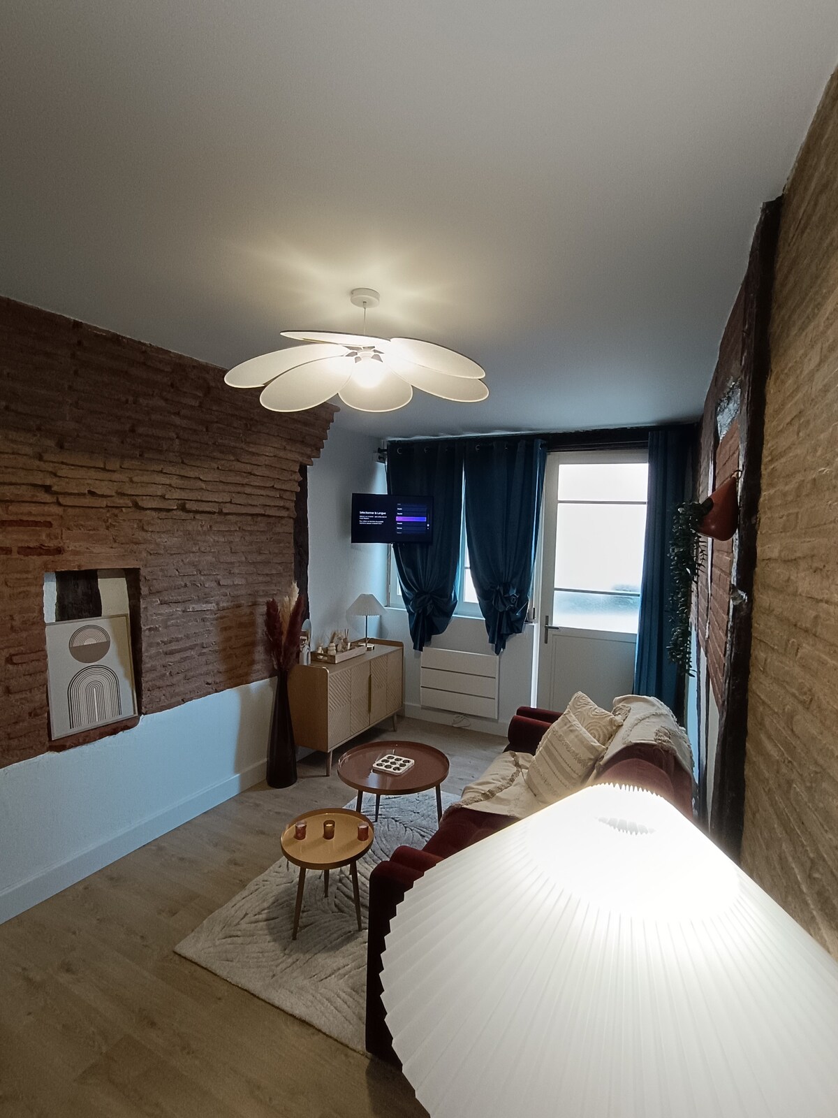 Appartement au cœur du centre-ville d'Albi, sur la place du Vigan. Beaucoup d'originalité, pour que vous passiez du bon temps dans notre magnifique ville d'Albi. Appartement tout équipé, au troisième et dernier étage : une cuisine toute aménagée, une salle à manger autour d'un bon feu de bois, un coin bureau, un salon cooconing, avec un canapé convertible et une belle chambre originale avec sa salle de bain et son dressing. Logement climatisé, et équipé de la WIFI. C'est l'adresse idéale !