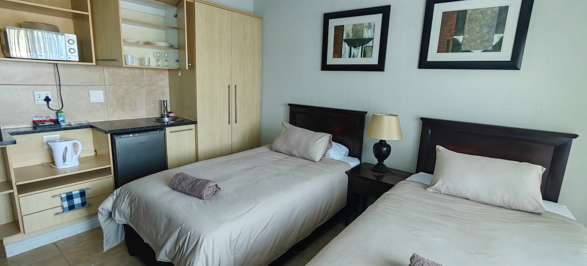 位於Langebaan市中心的完美私人自炊式單間公寓。寬敞的露台,配有室外烤肉架和日光浴椅。堆疊門完全打開,營造出美麗的開放感。全套NETFLIX、DSTV Compact、WiFi和Sound Bar,可欣賞音樂。距離商店和餐廳5分鐘。正計劃要去浪漫旅行嗎?我們可以在公寓內安排冰上氣泡酒、Ferrero Rocher巧克力和浪漫音樂,請與房東交談,我們可以以小額額外費用實現。