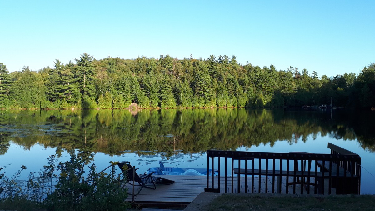 舒適的四季小木屋,距離蒙特利爾不到 1 小時,配有私人碼頭、腳踏船和皮艇。 此外,在這片土地上,您還可以使用另一棟建築:「小屋」。這棟三季的鄉村建築僅配備一個燃木爐,您可以在這裡放鬆身心,享受大自然的私密!