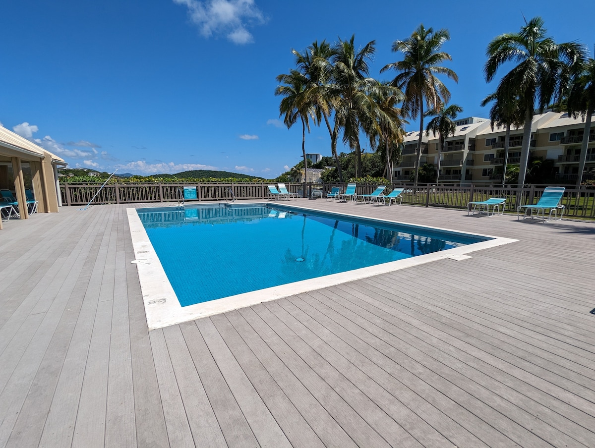 位於Grande Bay Resort度假村Cruz Bay中心的全新單房公寓。 特大床單間公寓套房,配有全折疊沙發、小廚房和客廳休息區、洗衣機烘乾機。 從室內和陽臺上可以欣賞到令人驚嘆的景色,坐落在山上,俯瞰克魯茲灣和周圍環境。 非常適合蜜月、週年紀念日或任何度假! 非常乾淨的房間和設備精良的家具。醒來就能看到加勒比海的藍色水域和陽光! 請注意:不包括停車位-付費停車位或計程車