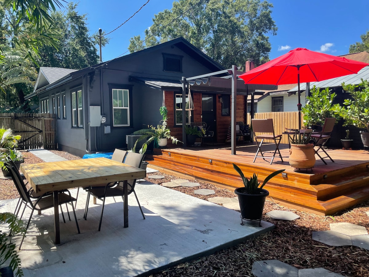 Sea-Glass Bungalow Tropical Peaceful Retreat. All are welcome here! Feel your worries melt away as the tropical breeze rustles the private garden, enjoy unique features such as hanging hammocks & screened-in porch. This unique space has a style all its own. Artistic accents highlight this converted garage into a modern studio.. When you’re not relaxing in this tropical oasis, explore the Lighthouse, Alligator Farm & Bird Watching, White-Sand BCHs, The AMP & DWTN all this< 1mi away.
