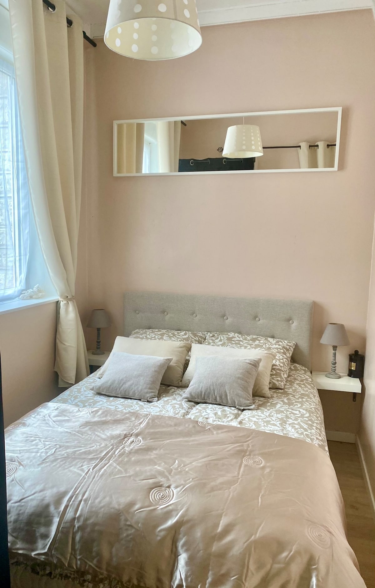 Situé au cœur de Falaise proche du centre-ville, du marché, commerces, lycée, école de musique et structures dédiées au sport, bel appartement type loft alliant le charme de l'ancien et du moderne. Entièrement rénové il se compose d'une pièce de vie avec TV led et canapé convertible, d'une cuisine aménagée et équipée (four, plaque, hotte, micro-onde, cafetière à filtre) coin repas, un espace nuit avec lit 140 cm, une salle d'eau. A disposition lit, chaise bébé. Stationnement devant l'immeuble