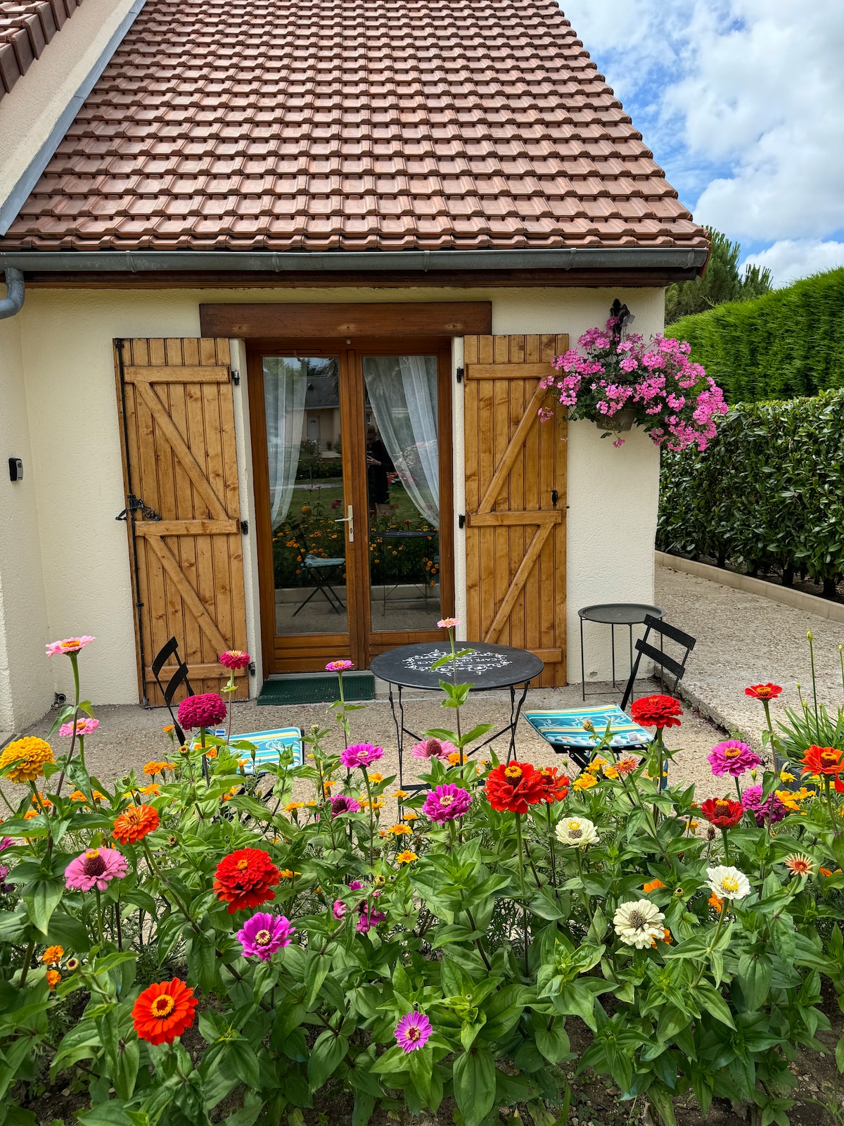 La maison est à l'intérieur de notre propriété mais totalement indépendante avec un accès au jardin. Elle dispose d'une grande terrasse plein sud à l'abri des regards équipée d'un salon de jardin. Du 15 05 au 30 09, si les conditions climatiques le permettent, vous pourrez profiter de la piscine chauffée et sécurisée. Nous fournissons le linge : draps, housses de couette, taies d'oreillers et serviettes de toilette. Nous pouvons mettre à votre disposition des accessoires pour bébé :