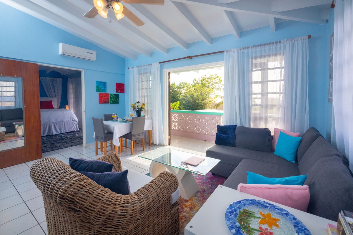 我們的第二個家海灘公寓真正被設計為第二個家。一個讓我們可以逃離世界,重新與自己建立聯繫的地方。它配備了所需的所有設備與服務,如舒適的客廳、高品質的床墊和床單、舒適的露臺可觀賞日落、設備齊全的廚房和每間房間的空調。 它距離辛普森灣美麗的白色沙灘僅兩間房子。