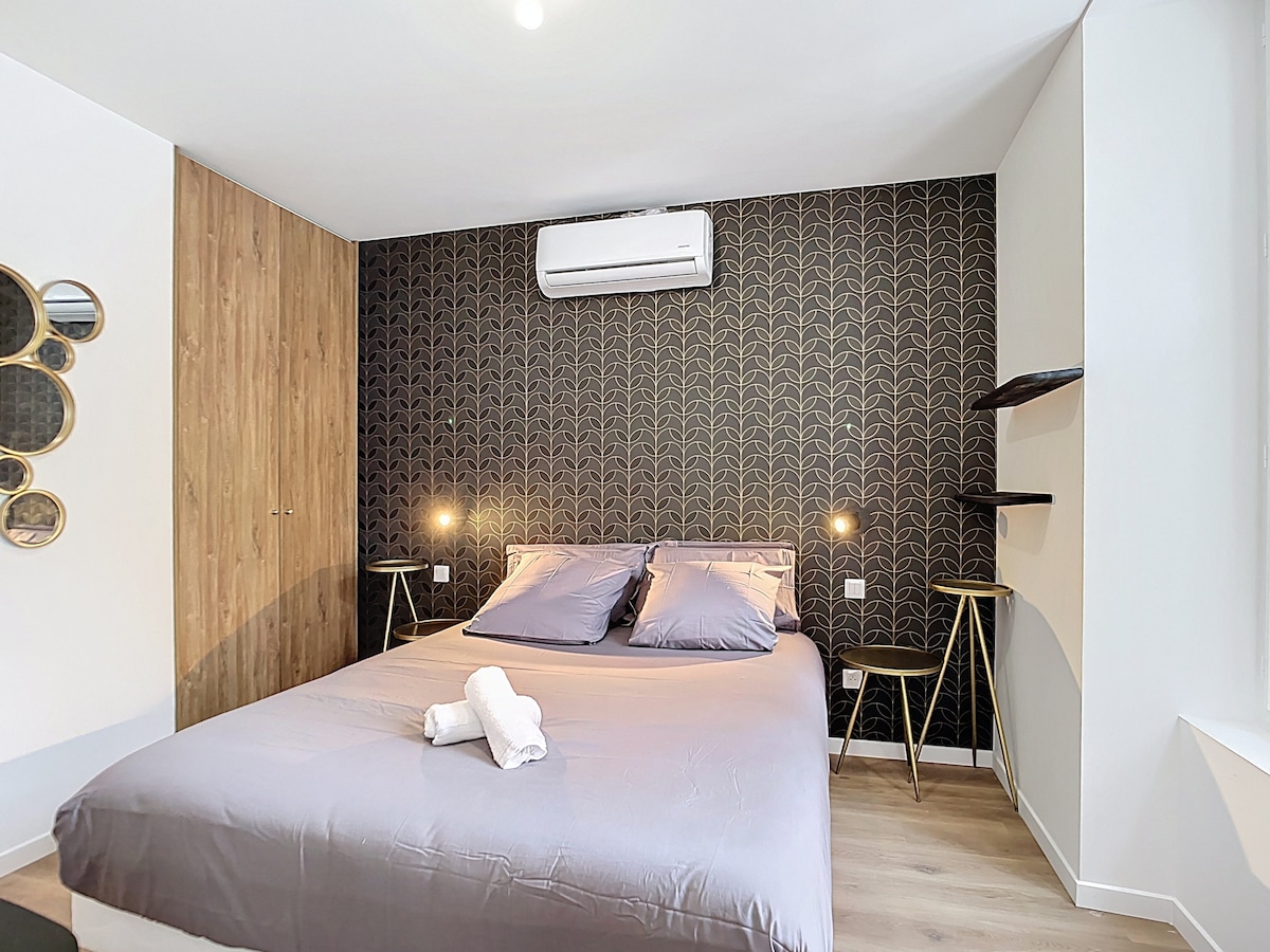 在這個寧靜的中心住宿中簡化您的生活。 私人露臺會讓您很快忘記自己身處市中心。如果您有幸在夏天來,您可以享用葡萄串。公寓安靜、實用且非常明亮。它位於一個大庭院內,遠離城市的噪音。您將靠近商店和湖泊,可以散步。 >城市巴士通道