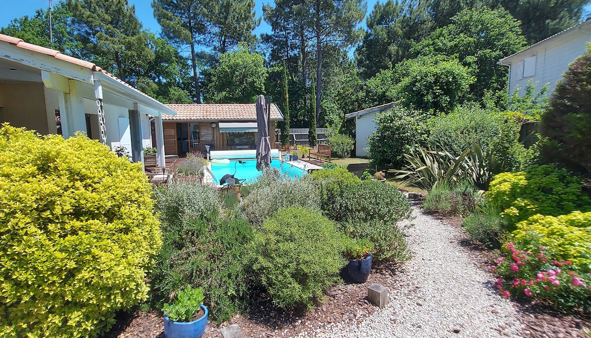 坐落在400平方米的隱藏式私人花園中,周圍是林業環境,坐落在Andernos-les-Bains中心,以熱帶和異國材料建造的漂亮木屋。 小木屋位於Arcachon Bay (車程5分鐘)附近,距離Cap Ferret 30分鐘車程,距離Bordeaux Mérignac 3分鐘車程,距離市中心僅8分鐘車程。 靠近無數的自行車路線。