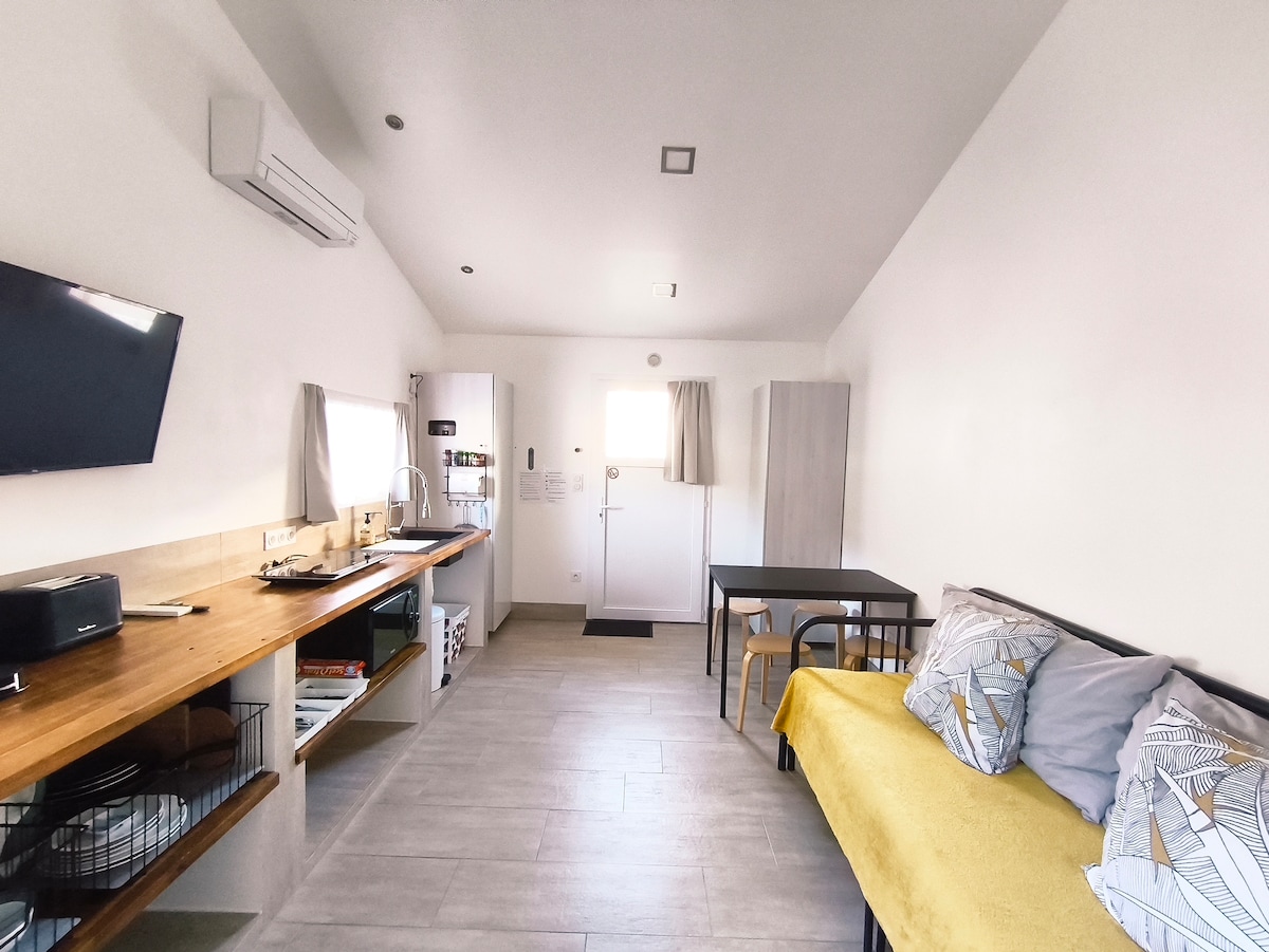 La Bastide des Amandiers歡迎您來到L'Appart ,這是一間可供2人入住的漂亮小屋( 37平方公尺) ,位於主樓的上層,設有獨立的戶外入口。 您還可以在花園裡享用一個小型私人夏季廚房和兩張日光浴躺椅。 我們的房源內還有另外兩間小屋,歡迎尋找寧靜的人入住。 周圍沒有安裝躺椅,以保護每個人的隱私。