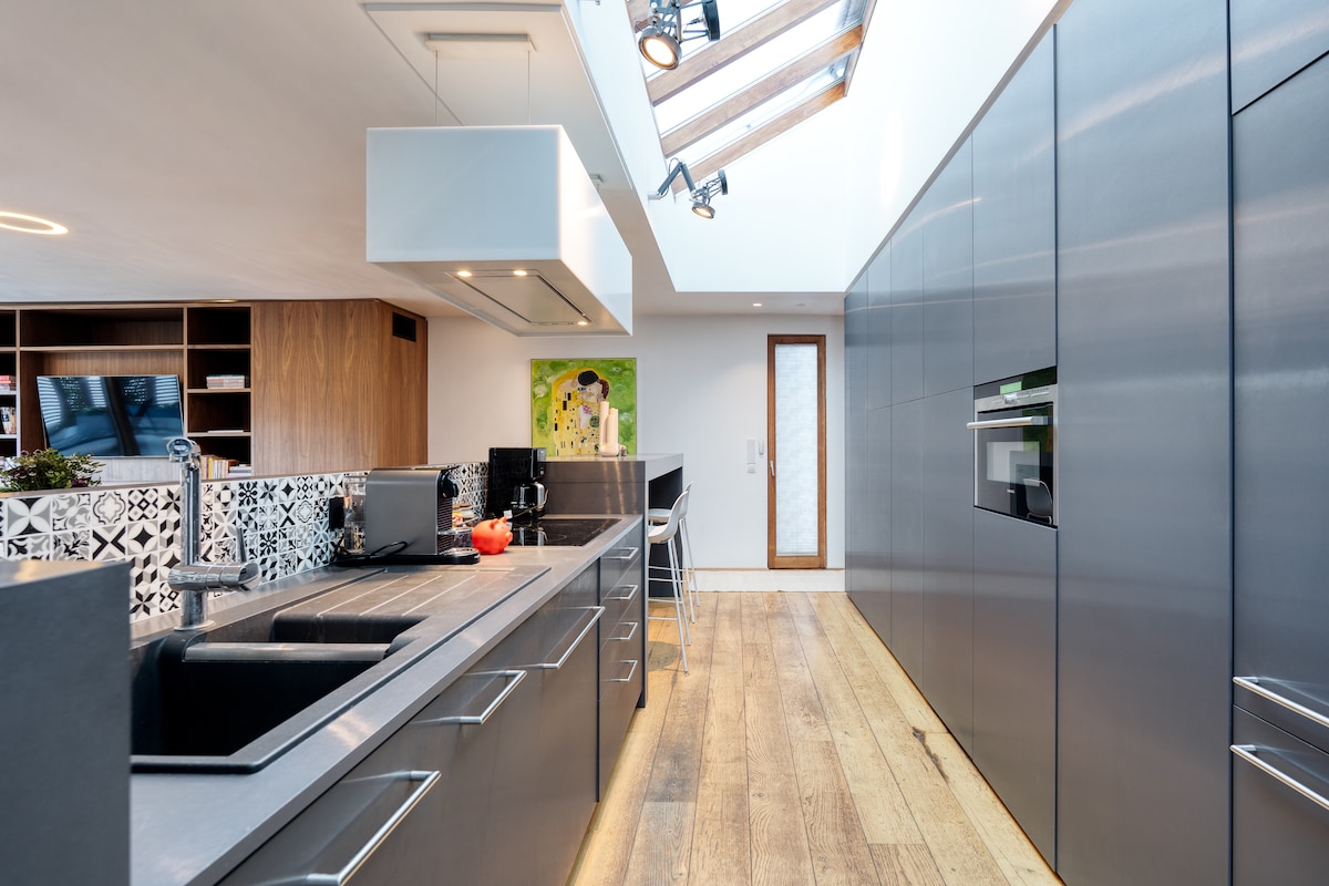 Un logement singulier à Liège Nous proposons à la location un loft lumineux de 150m² sur deux étages situé au coeur de Liège, au calme, dans un lieu baigné de verdure proche du parc de la Boverie et de son nouveau musée d'art. Ce logement offre un vaste espace de vie avec cuisine ouverte au rez-de-chaussée, deux chambres doubles à l'étage avec deux salles de bain et tout l'équipement de confort. Il est idéal pour les couples et les voyageurs d'affaires.