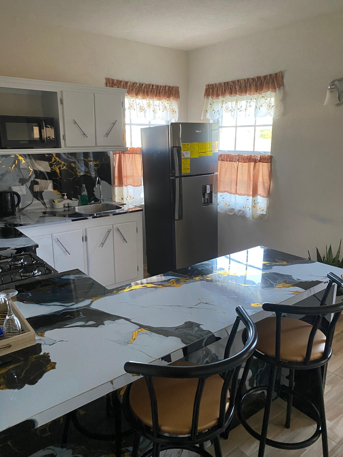 可愛寬敞的聯排別墅,可欣賞加勒比海的絕佳景色。 整個房源都有大教堂天花板,所有房間配備吊扇。 高級社區的寧靜安靜環境。 大房間的露天感充滿了不斷的海風 這更像是安靜住宅區的家庭體驗,而不是派對屋或飯店住宿。 大型美食風格的廚房和精美的瓷器。 後甲板長40英尺,可俯瞰海景