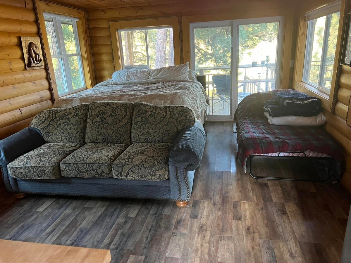 來放鬆一下,閱讀書本時享用一杯咖啡。在城裡或在您自己的私人小屋的甲板上享用美食,俯瞰我們的池塘和小溪。該地區有許多有趣的戶外活動,包括徒步旅行、騎自行車、划獨木舟、狩獵、釣魚、滑雪、打高爾夫球,距離兩個不同的溫泉僅20-30分鐘,距離Flathead湖一個半小時。配有一間雙人床臥室、一間浴室、一間客廳/餐廳、拉出式沙發和配有兩張雙人床空氣床墊的閣樓。