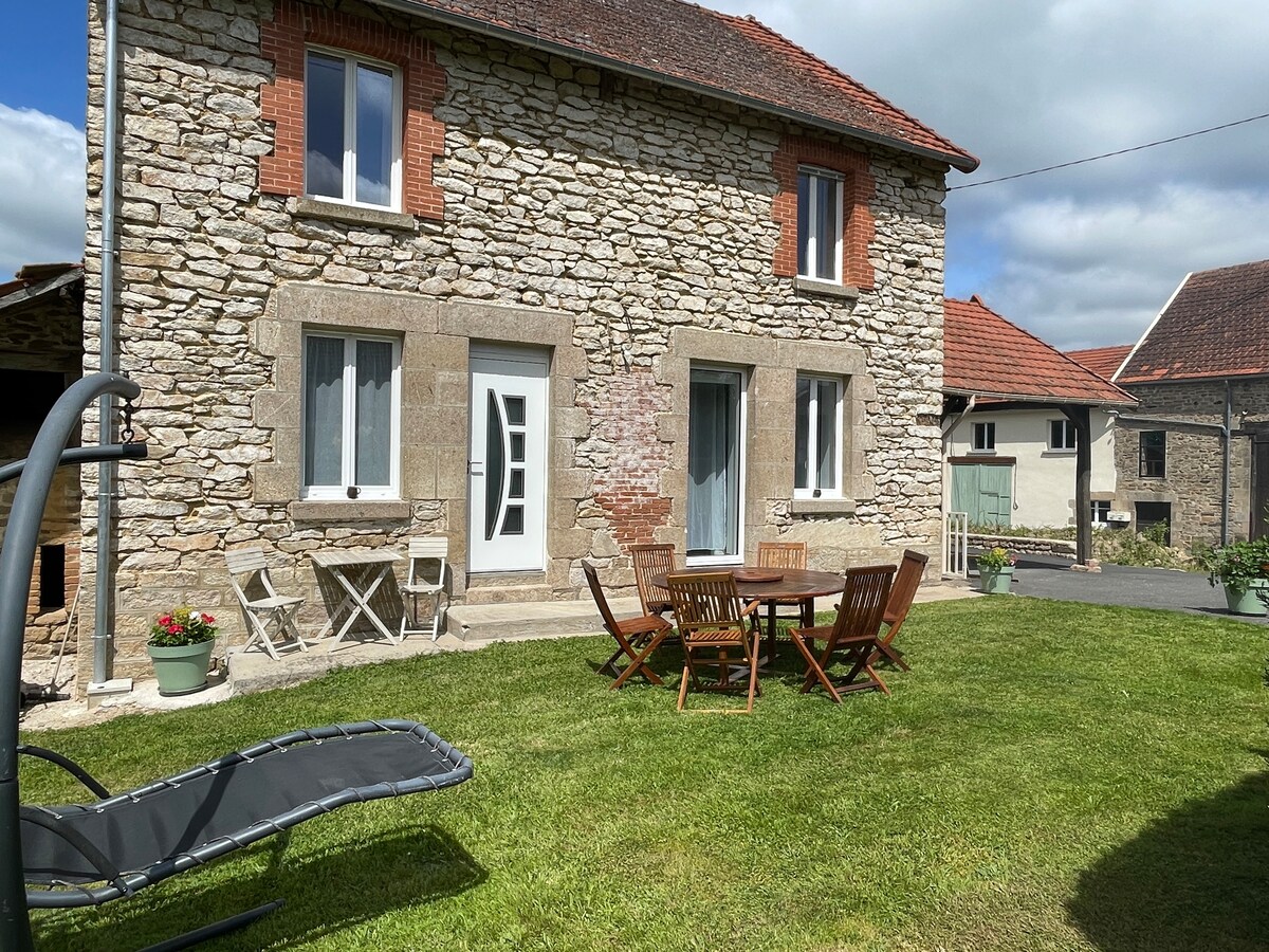 三房小屋,附樹木花園,靠近所有便利設施(步行 5 分鐘即可抵達市中心),位於埃居宗湖 (Lac d'Eguzon) 道路/休閒區(3 公里)上。 來探索克魯斯河谷(Creuse Valley)及其眾多的健行步道,穿梭於森林、湖泊和河流之間。 🍁🌳 🛋️📺 客廳/餐廳/廚房,配有電視和 WiFi 🛏️ 2 間主臥套房,配有浴室和廁所 ⛱️☀️露臺/花園,配有花園家具、遮陽篷和烤肉設備。 可反轉式❄️空調。 提供床單 🧺