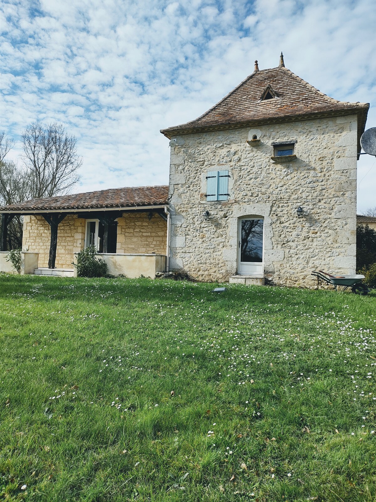 坐落在葡萄園中,可欣賞到周圍森林的不間斷景色。 這個風景如畫的石頭房子提供了一個現代化的內部,所有的散發物,必須需要國家離開。 如果您想沿海遊覽,前往波爾多、貝爾格拉克、聖埃米利翁或阿卡雄、Biaritz或Saint Jean de Luz一日遊的理想地點。