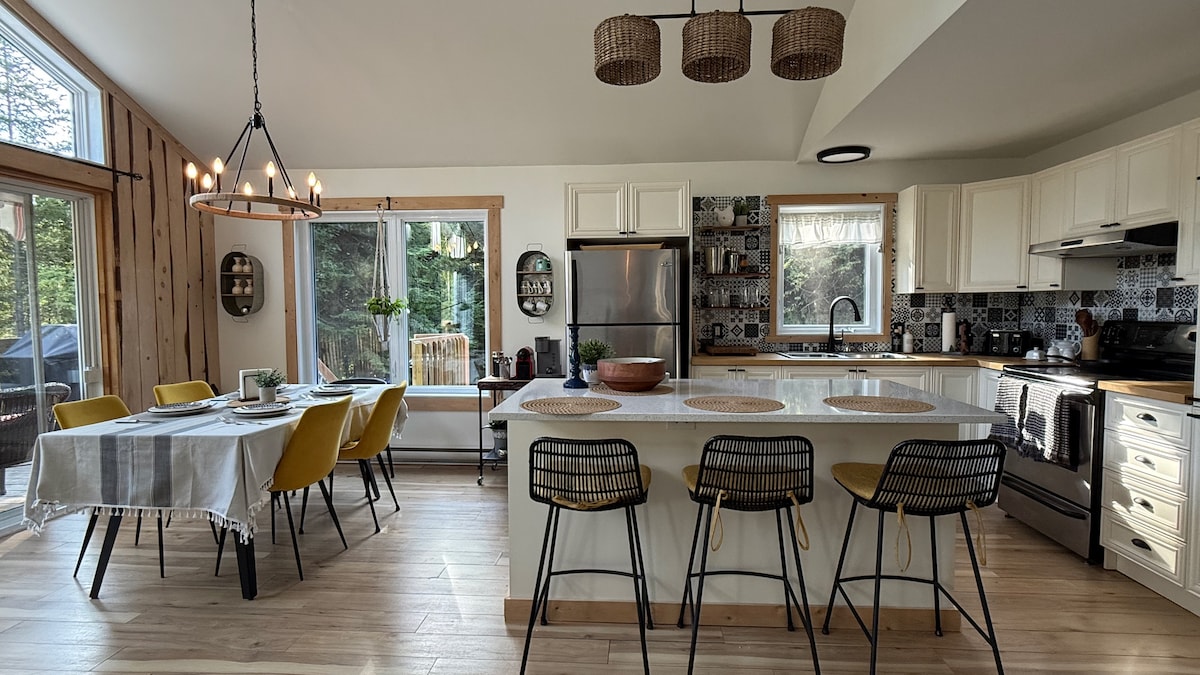 De part sa décoration, rustique et son cocooning exemplaire, la maison est l'endroit parfait pour relaxer et se détacher de la vie courante. Pendant votre séjour, vous pourrez profiter de la terrasse extérieure, du spa , du feu extérieur et des différentes activités disponibles à proximité de la maison. La passe d'accès familiale pour le Parc national de la Mauricie vous est prêtée Pour le mois d'avril avec réservation de 2 jours et plus une chandelle au sapin à mon effigie vous sera remise
