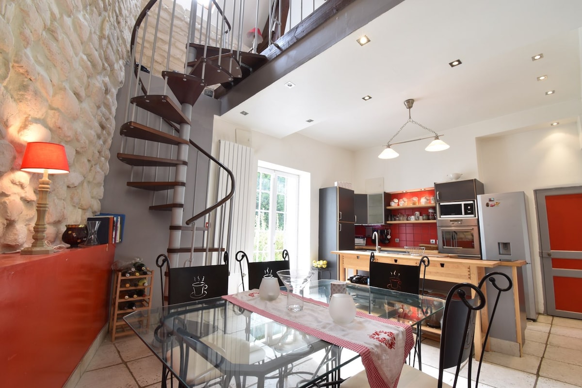 這間房子融合了舊式和現代舒適的魅力。 您將享受美麗的裸露石牆、木樑和清醒的裝飾,為您的欲望留下空間。 廚房設備齊全,開放式的寬敞明亮的客廳。 樓上,兩間大閣樓臥室提供溫馨的氛圍,配有拼花地板和外露的橫樑。 現代化的浴室完善了一切。 非常適合情侶、同事或好友入住。