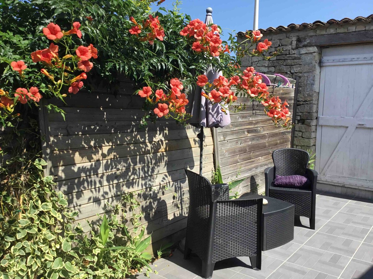 Nous vous accueillons dans ce charmant studio au cœur de Sainte Marie de Ré, proche des commodités et situé à 800m des premières plages. D'environ 22 m2, il est totalement indépendant, récemment et entièrement rénové. Autour de 2 espaces extérieurs (auvent et courette plein sud) vous disposerez d'un espace salle d'eau et d'un ensemble cuisine - salon - chambre. Le lit coffre (160x200) est fait à votre arrivée et les serviettes de toilette sont fournies !