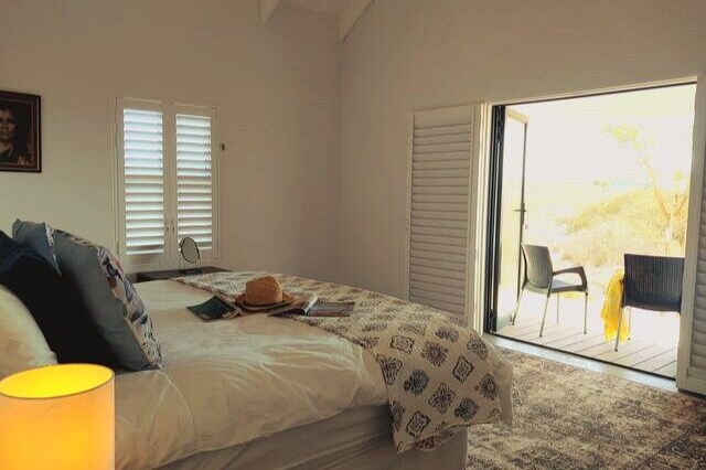 在西海岸的海景開放式小型公寓(小巧緊湊)中放鬆身心,坐落在Velddrif和Dwarskerbos之間的寧靜房源中,配有「希臘風格」的樓梯。房客可以在陽臺欣賞壯麗的海景,並在海灘上晨間散步。真正寧靜放鬆的度假勝地。房客可以享受主房源的共用泳池,並在私人迷你庭院中享有獨立的營火區。從公寓步行1-2分鐘即可抵達海灘通道。