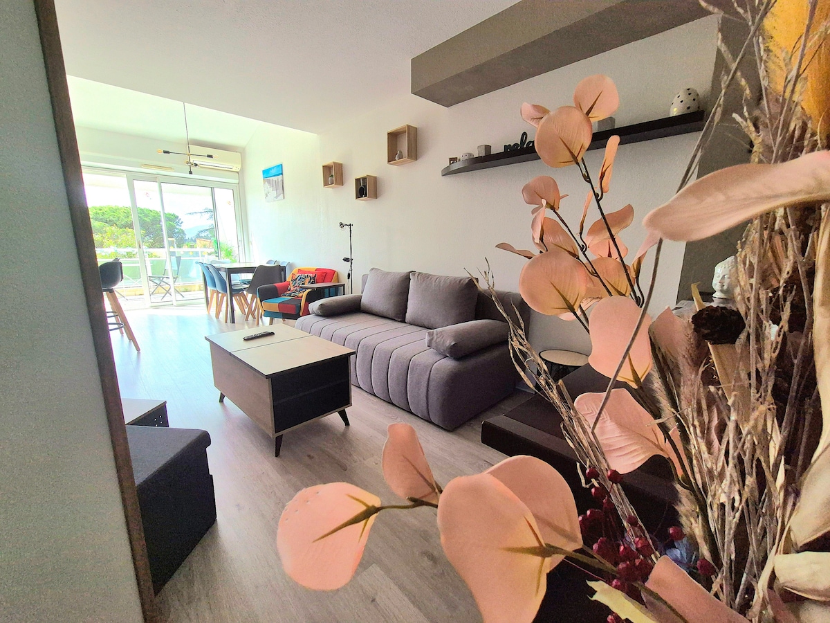 我的 30 平方公尺公寓位於市中心和港口之間的海濱,最多可容納 4 人入住,住宅區安全有保障。 翻新後,它旨在為您提供溫馨舒適的氛圍,並享有壯麗的海景。 大露台讓您可以在戶外用餐。地中海停車場為您保留一個停車位。 住宅大樓下方有各式商店等著您……