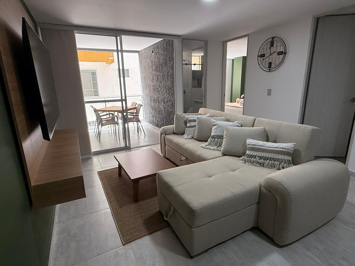 在私人公寓內的工業風格舒適公寓中與家人或朋友一起享受您的假期,這裡有停車位,您將獲得不同的體驗,欣賞美麗的山景和兒童遊樂區。公寓距離主廣場僅四條街,在那裡您可以欣賞到該地區的典型景點,例如「Willys」,您可以到達美麗的科科拉山谷 (Valle de Cocora),欣賞其風景和美食。
