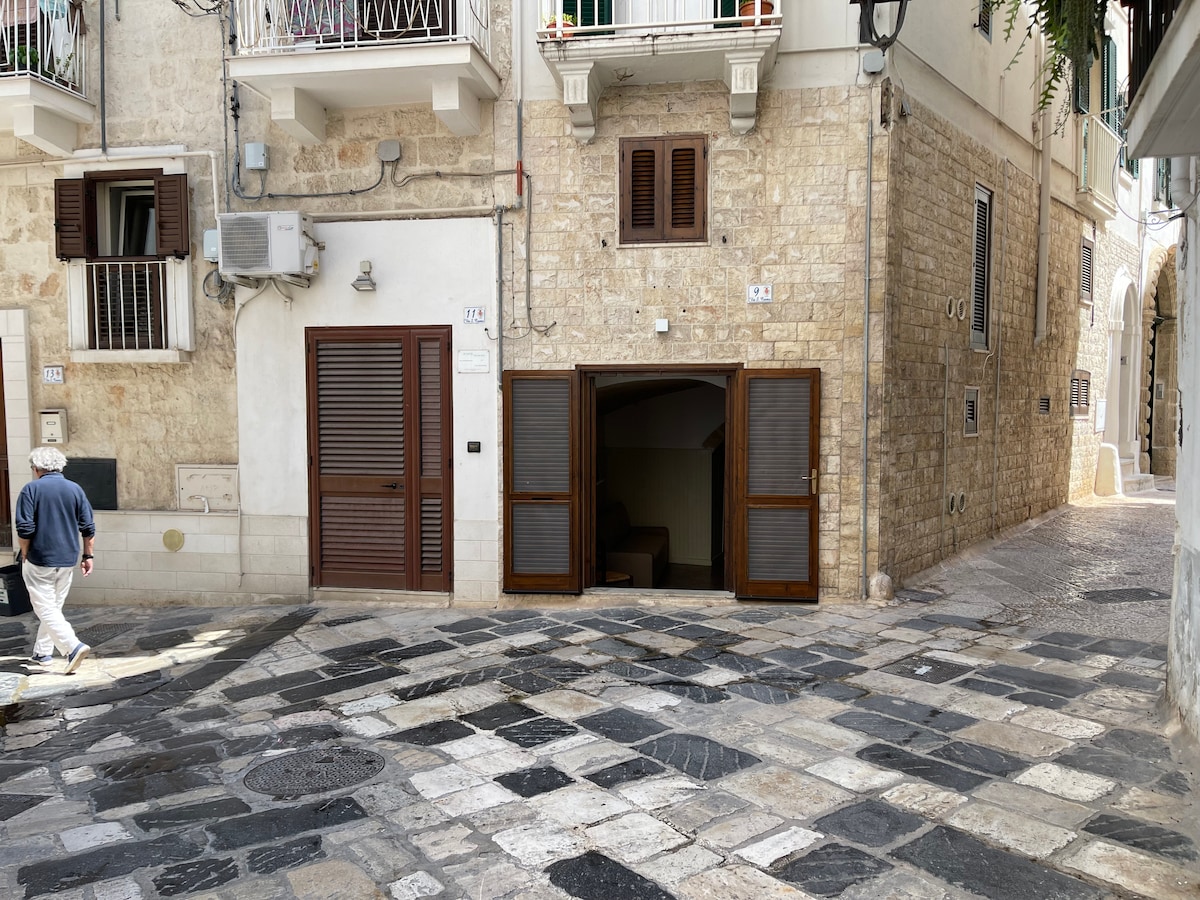 位於一樓的公寓,前面就是Monopoli宮殿( Palazzo Storico di Monopoli )前面。 由大型起居室組成,配有沙發牀和小浴室的廚房。 上層有樓梯、雙人臥室、帶2張單人牀的臥室和浴室。 Monopoli歷史中心( Historic Center of Monopoli )的典型房屋,位於tuff and桶拱頂