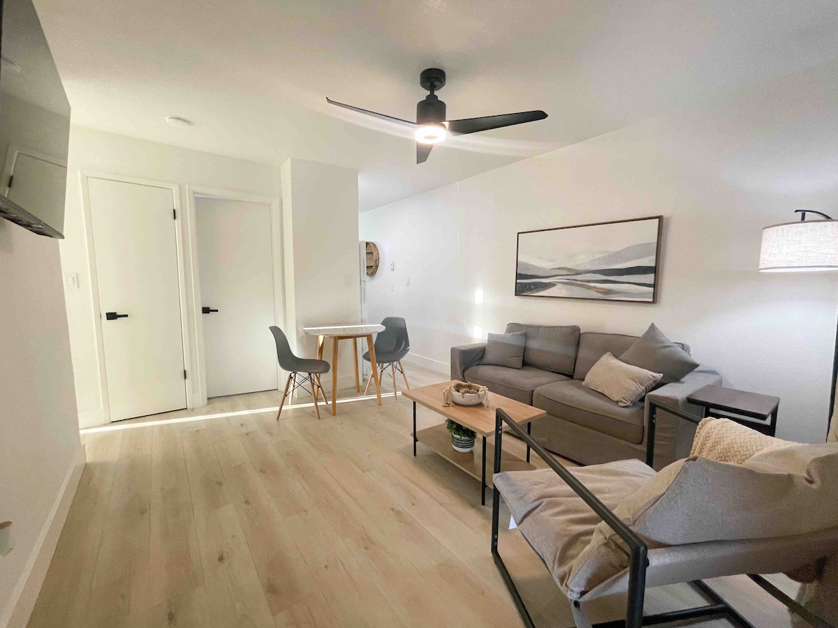 入住這間位處莫德斯托(Modesto)中心地段的房源,享受這裡時尚品味!距離一切僅幾分鐘路程,步行即可抵達許多商店。您將擁有自己的獨立入口、小廚房(無爐子/烤箱)、浴室和臥室,全部供您使用!請注意,此單位與我家的主屋相連。我們有兩隻狗,我的鄰居也有,所以噪音水平並不總是安靜。請隨時與我們聯絡。我希望您的住宿盡可能舒適和輕鬆。*