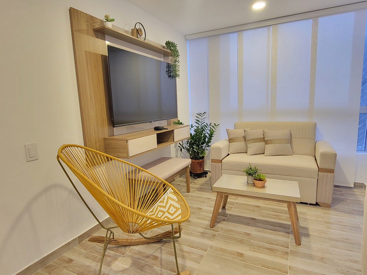 位於巴蘭基亞最獨特區域的豪華、舒適和現代化套房⭐⭐⭐⭐⭐,四周有Buenavista、Mall Plaza和Plaza del Parque購物中心,非常適合工作和/或休息。