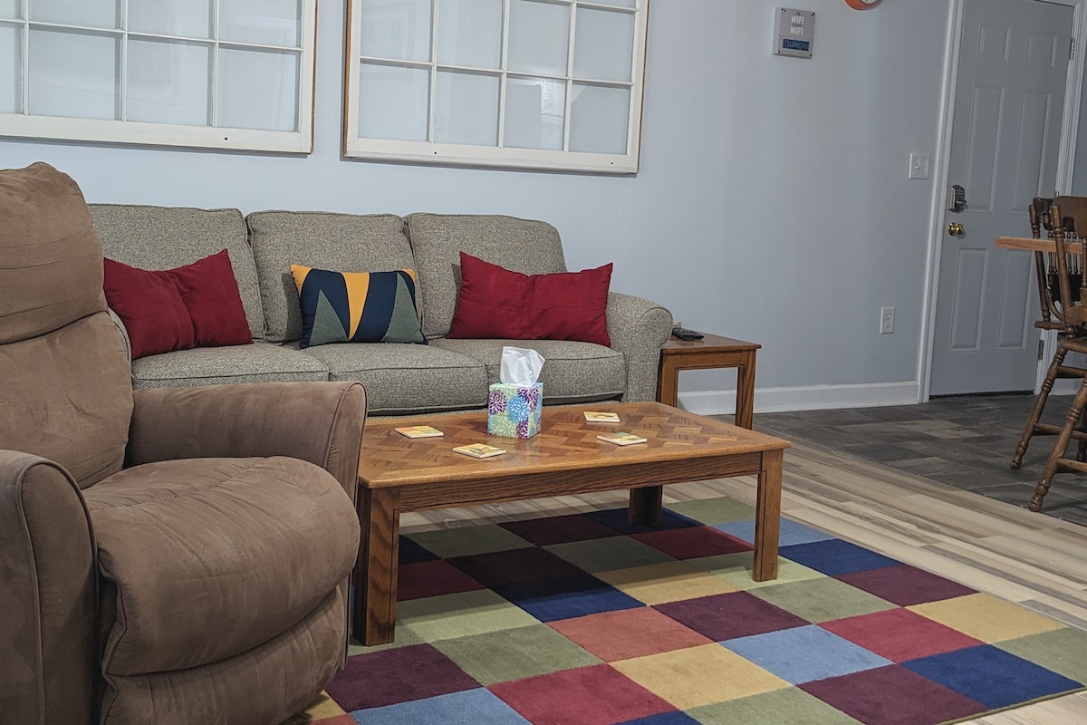 這是一個2臥室、1間浴室的房源,讓您有住在鄉村或小木屋的感覺,並輕鬆前往城市設施。 房源坐落在小鎮邊緣的2英畝封閉佔地上,擁有豐富的樹木、大自然和寧靜,為您的度假增添了更多元素。 這片可攜帶寵物入住的區域是封閉的,為運動狩獵者、家庭或只想有自己的空間放鬆身心,提供奶奶房子的舒適和感覺。