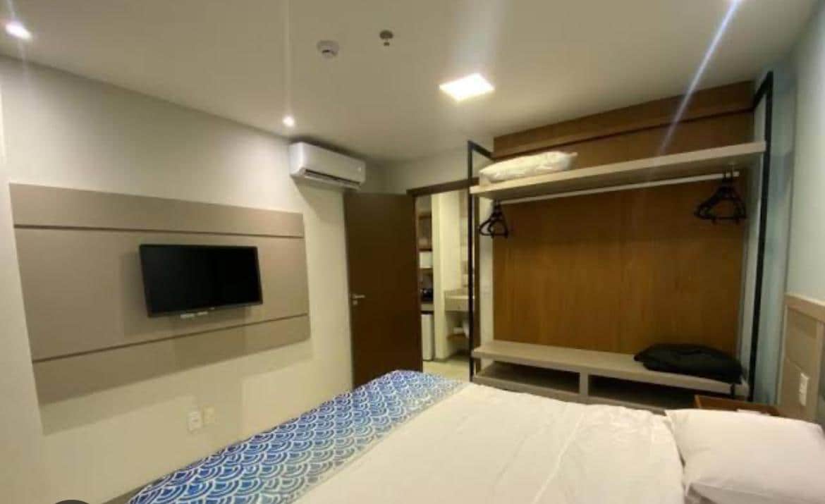 Salinas獨家度假村–最多可供7人舒適休閒 它將優雅和實用性融合在一個完整的環境中。 公寓最多可容納7人,配有空調套房、配有雙人床的第二間臥室、配有智慧電視和沙發床的客廳,以及設備齊全的小型廚房。 度假村提供客房服務、泳池、水療中心、健身房、餐廳、兒童娛樂和直達海灘,確保帕拉海岸最佳目的地Salinópolis的舒適、安全和休閒。