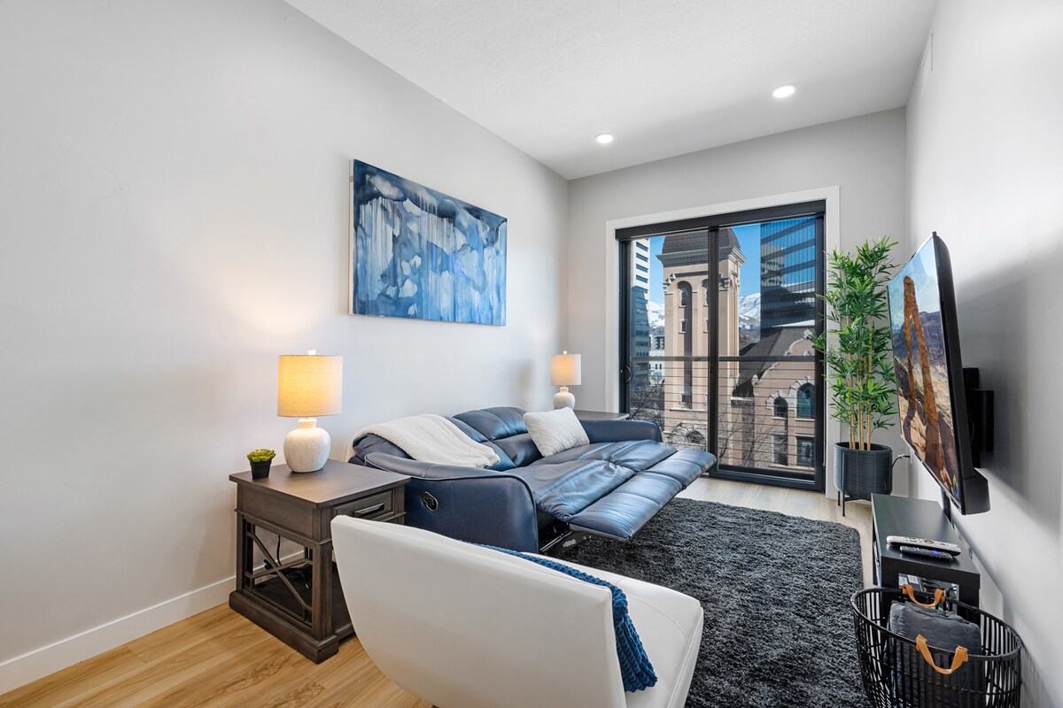 Enjoy a modern & cozy experience at this centrally-located apartment in downtown Salt Lake, only a 7 minute drive from the Airport, 10 minute walk from the Delta Center & 4 minute drive from the salt palace convention center! This city is full of award-winning ski-resorts, bars, restaurants, shops and a neighbor to beautiful mountains, lakes & other historical landmarks. Adventure through Salt Lake easily from this prime location! Learn more below: