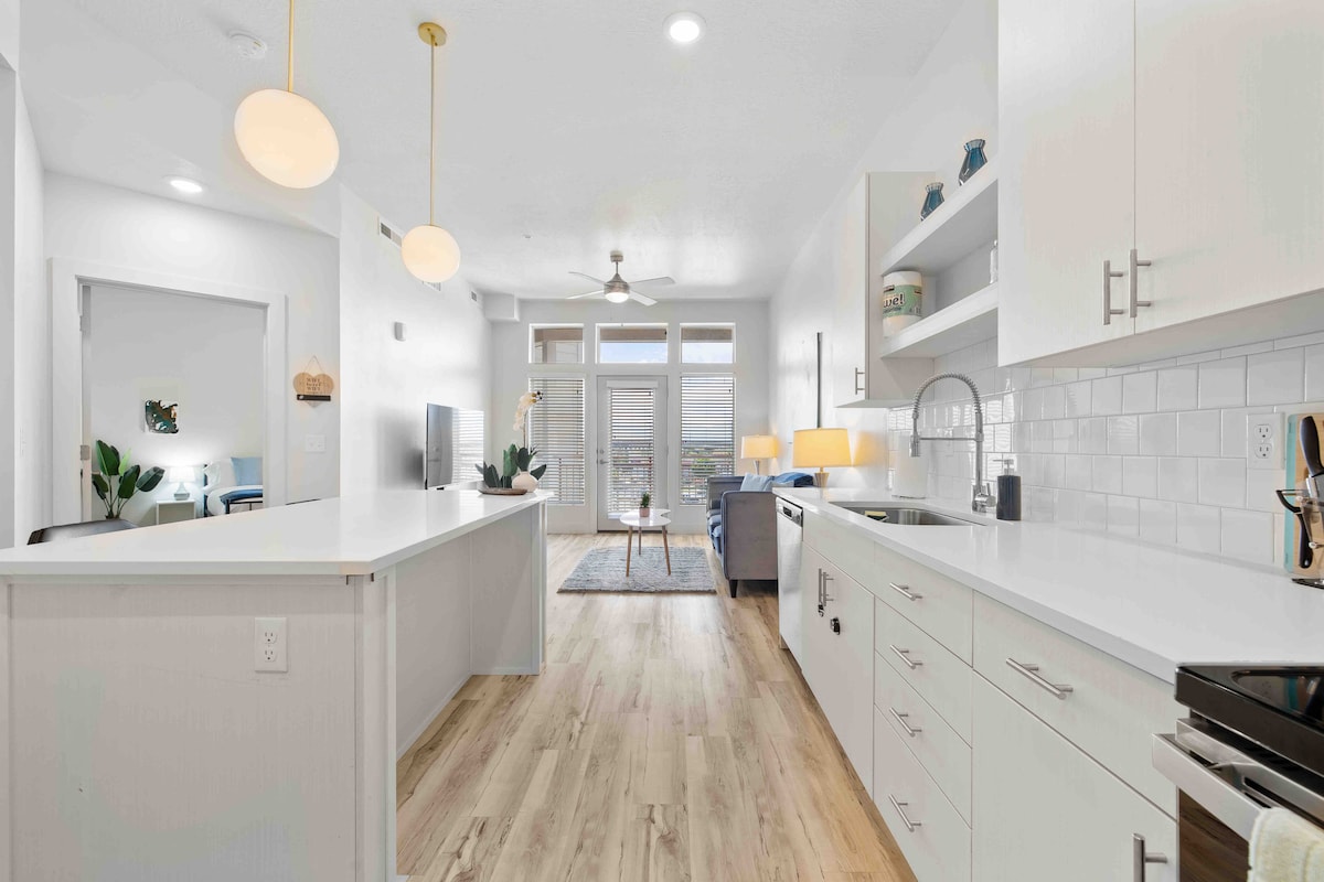 入住這間位處中心地段的房源,全家到哪都方便。從Alta、Park City、Brighton Ski Resorts出發40分鐘。鹽湖城市中心。普羅沃北45分鐘。在這間定制裝飾的公寓中放鬆身心,設備齊全的廚房、洗衣機/烘乾機、泳池、按摩浴池、健身房、有蓋停車場、二樓、輪椅可通行,附近有電梯。靠近美食、購物、娛樂和戶外活動!