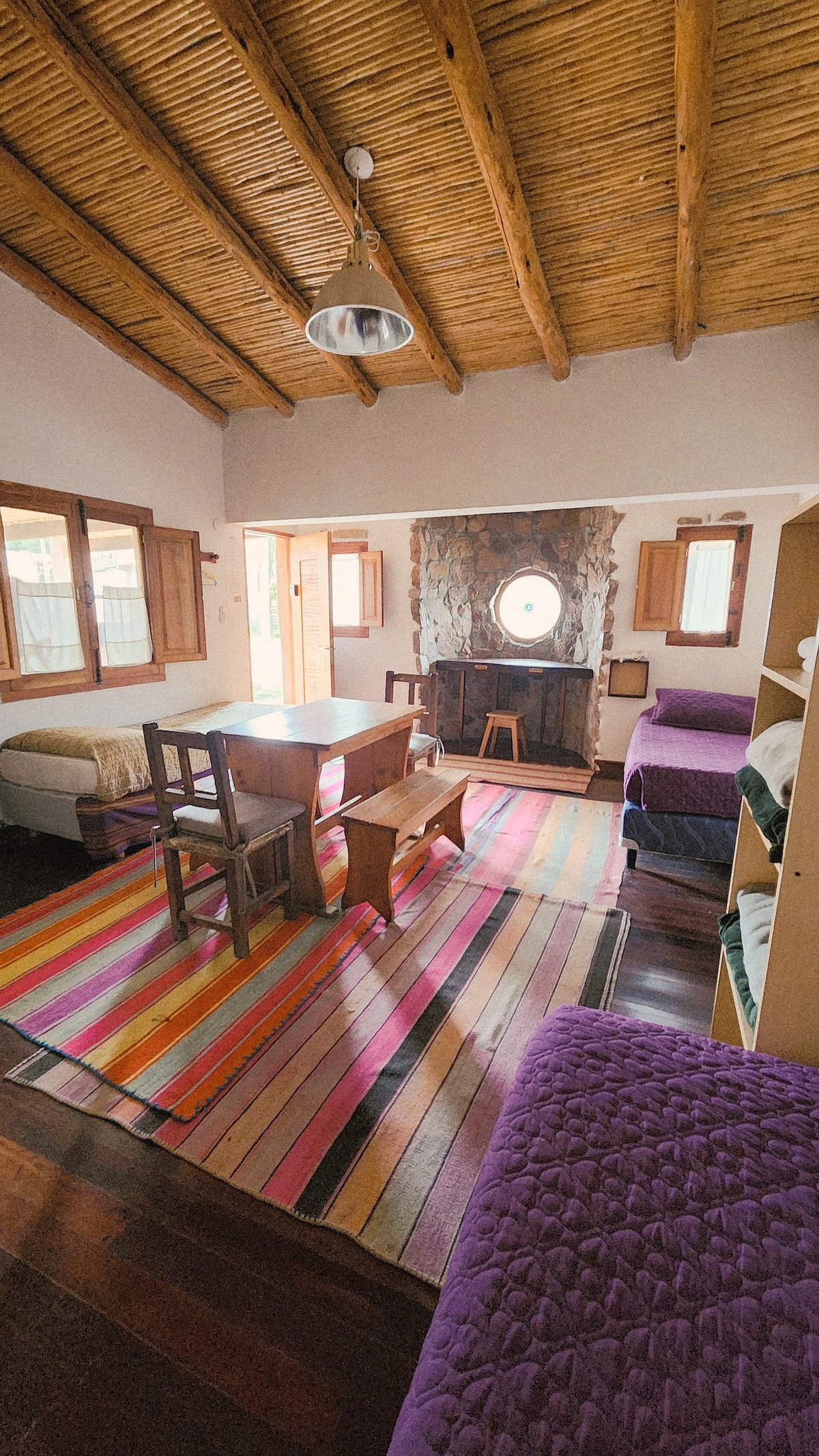 Hospédate en Eterno Sol Loft Andino: espacio luminoso, cálido y tranquilo, con piso de madera y ducha abundante. Ideal para familias en Humahuaca