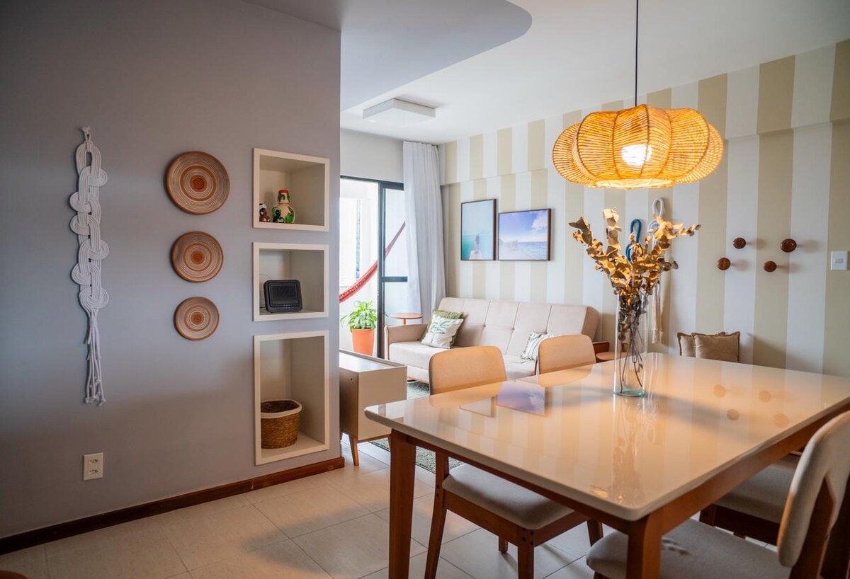 Conheça Salvador em alto estilo e conforto! Apartamento completo!!! Ar condicionado! Tv smart! Internet! Coocktop indução! Microondas! Liquidificador! Cafeteira! Airfryer! Geladeira! Panelas indução! Talheres! Copos! Aparelho de Jantar! Aparelho em inox para criança! Cama com molas ensacadas! Sofá-cama! Guarda roupa! Mesa com cadeiras + sofá! Rede! Banheiro com chuveiro Elétrico! Apartamento absolutamente novo, a beira mar, recentemente ampliado em uma das mais belas praias de Salvador!!