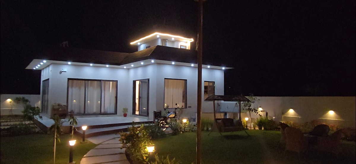 Leaf Haven-私人3臥室豪華農場風格別墅,配有雞尾酒/水療池,位於Jaipur Ajmer–Delhi Road。 遠離城市喧囂的完美週末自然度假勝地,非常適合情侶、家庭和朋友入住。 周圍有綠色植物、百合池、噴泉和開放式草坪。 醒來時聽到鳥鳴,在星空下的篝火旁放鬆身心,享受靠近大自然但與城市連接良好的寧靜時光。長期住宿/在家工作友善-溫馨舒適。 暫時遠離世界,回到自己身邊