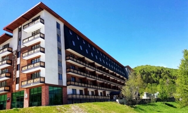 An apartment is Very stylish and new in the Mardi bakuriani business center with 24/7 front desk. It is bigger than an average - 60 Square Meters. All facilities are new, the place is very harmonic with nice mountain view. The location is Just Perfect, it is next to the famous Ski slope 25, named after an old 25-meter ski trampoline nearby, it is best place for beginners to practice on. There is in 1 minute walking distance the JoyLand and Bakuriani Park - Lovely place for families. Welcome!