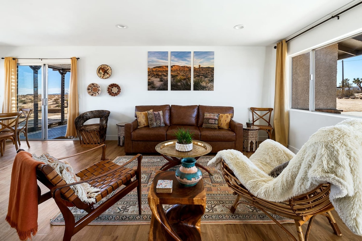 在配備淺色木製檯面的舒適廚房內準備早餐。在這間陽光明媚的平房中,您可以在戶外野餐桌旁用餐,同時欣賞遠處山脈的全景。在外頭玩了一整天後,您可以在吊床上放鬆身心,或在夜幕降臨時圍坐在火坑旁。 Hip Light Filled Bungalow 是「Amor Collective」的一部分。Amor Collective 會將您預訂的 10% 利潤捐贈給 Habitat for Humanity。 Habitat for Humanity將人們聚集在一起,建造家園、社區和希望。 我們的約書亞樹陽光平房( Joshua Tree Sunshine Bungalow )位於約書亞樹市( Joshua Tree )的1.25英畝。 我們距離公園西入口15分鐘路程,距離約書亞樹市中心僅9分鐘路程,有許多有趣和古怪的景點。 有兩棵大樹遮蔭平房。 令人難以置信的景觀和寬敞的開放空間。 整個房源和1/4英畝的土地都歸您使用。 我會讓您獨處,但不會太遠,我很樂意透過簡訊或電子郵件回答您的任何疑問。 這個街區很安靜,大多數房屋都在一英畝或更多的土地上。 開車即可抵達城裡的餐廳、商店和咖啡廳,以及約書亞樹國家公園的入口。 您需要自己的車輛才能四處走走。 如果您的團體中有任何未披露的其他人,我們將向每人收取額外費用。 禁止攜帶寵物。