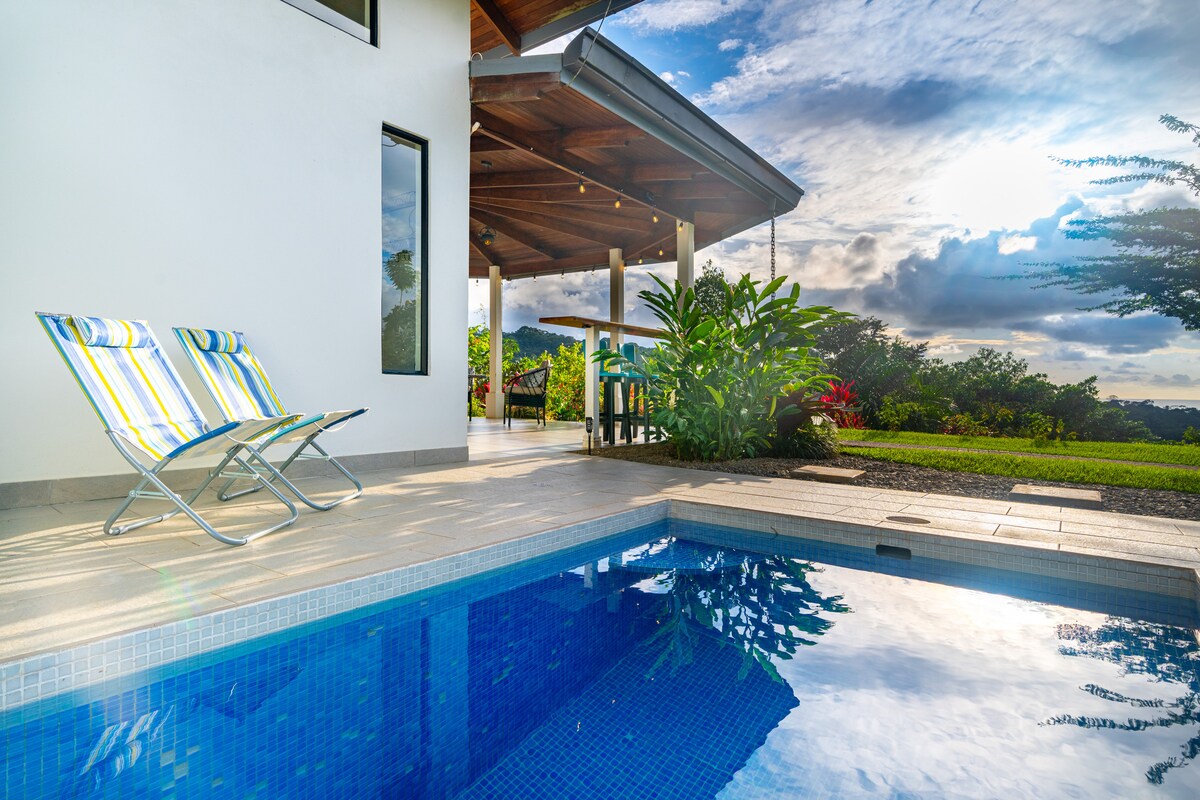 在輝煌的樹頂上漫步,在附近的雨林小溪、遙遠的海浪和熱帶鳥類的溫柔的喋喋不休中醒來。 這間現代化但舒適的1間臥室/1間浴室配有所有廚房必需品、燒烤和豪華浴缸,可欣賞叢林景觀和雙淋浴頭。 走出戶外,進入無邊泳池,享受可定制的照明和海洋景觀。 猴子、樹懶、巨嘴鳥、coati 's和瀑布比比皆是。 環繞著寧靜、充滿活力的自然美景。