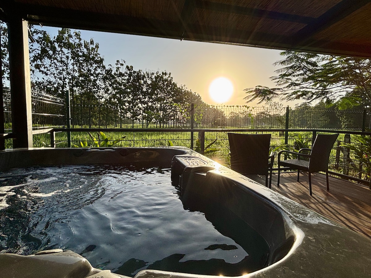 這是一個擺脫日常生活、與大自然連接的住宿,設計現代,裝飾溫馨,四周環繞著大自然,您可以觀賞許多鳥類,欣賞火山的美景,享受陽臺、露臺、清涼的游泳池和私人按摩浴缸。是情侶、朋友或遠距工作的理想場所。 位置優越,靠近所有主要活動地點,距離拉福圖納市中心僅 2.5 公里,距離拉福圖納瀑布僅 1 公里。