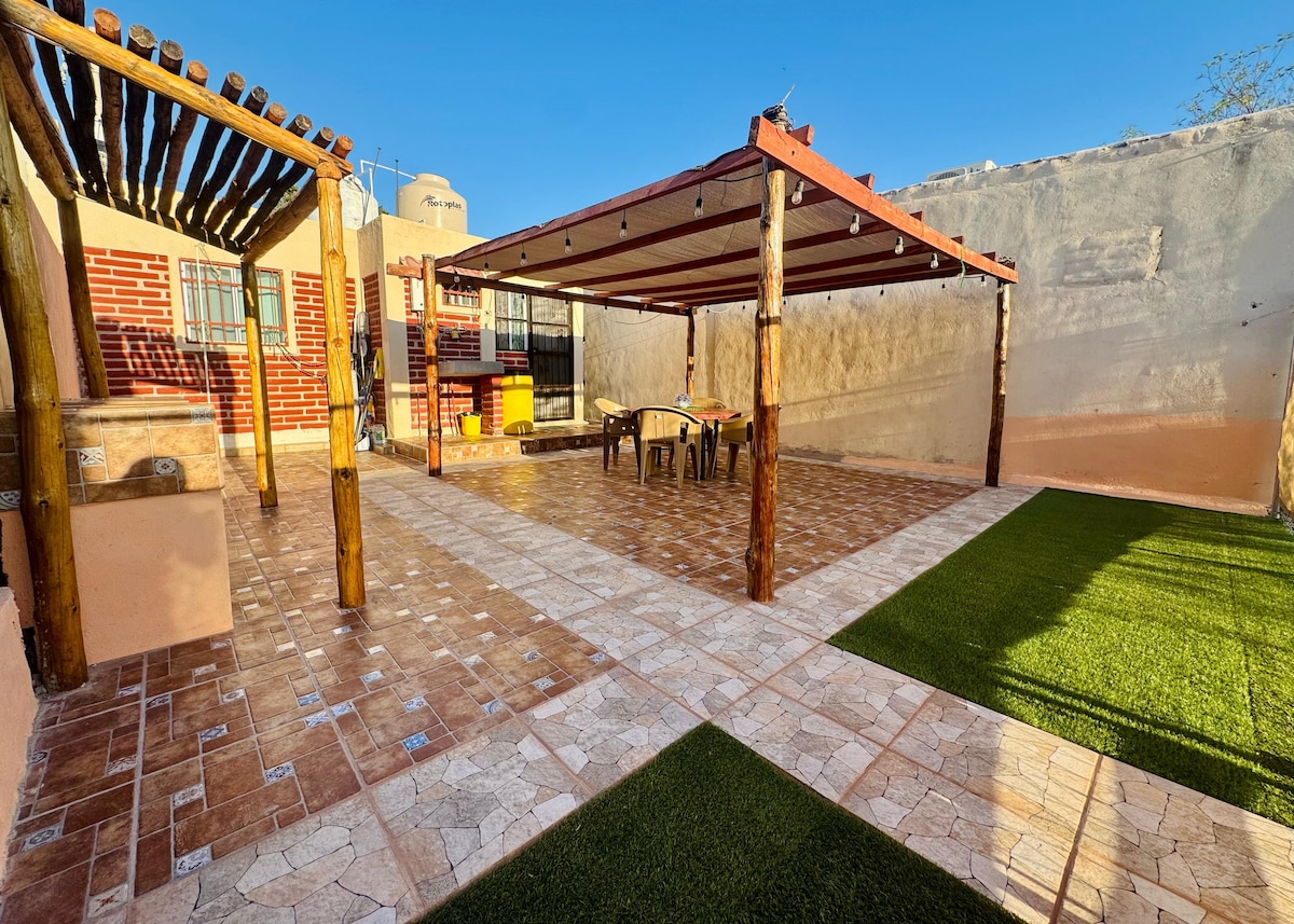 Cómoda casa totalmente amueblada ideal para disfrutar de las bellas playas de San Carlos y de su gran variedad de lugares que visitar. Incluye cocina con estufa, microondas,licuadora tostadora,cafetera, trastes, refrigerador y todos los utensilios necesarios para preparar comida. Se incluyen 3 Smart tv con servicio de Netflix e internet inalámbrico. Tenemos 3 camas y un sofá cama. Tiene 3 minisplit, estacionamiento privado y un patio trasero con asador, pérgola y mesa grande. 4 sillas playeras.