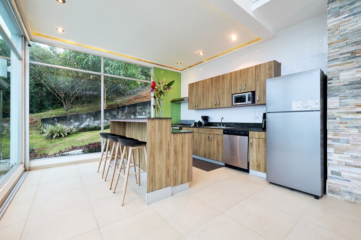 位於巴拿馬Altos del Maria的現代山屋,距離巴拿馬市僅1小時30分鐘路程。 該社區有河流和觀鳥小徑,距離太平洋海灘僅25分鐘路程。 這是休息和放鬆的完美之地。 房子有現代裝飾,無邊際泳池, 2間臥室配有空調, WiFi ,洗碗機,洗衣機和烘乾機,山景非常好。 週日退房的租賃可免費延遲退房。