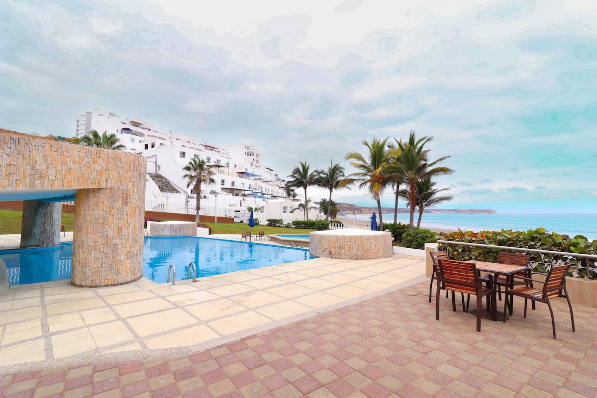 Disfruta una estadía completa frente al mar en una suite moderna y confortable dentro del Club de Playa Punta Blanca. Accede a exclusivas áreas sociales, jacuzzi, gimnasio equipado y amplias terrazas con vista panorámica al océano. Un entorno privado y seguro, ideal para relajarte, compartir y desconectar. Ubicación estratégica a minutos del aeropuerto, playas de Jaramijó y la ciudad de Manta. Aquí el descanso, el bienestar y el mar se viven al máximo.