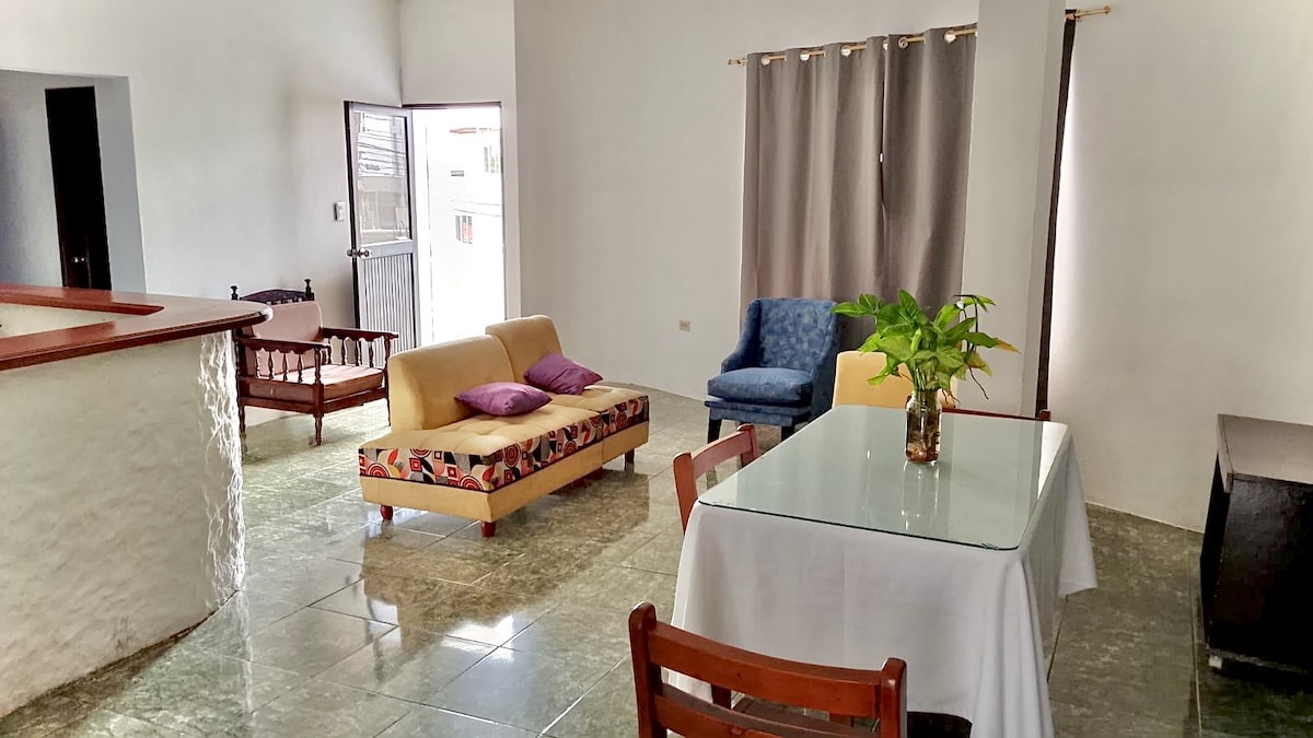 位於聖克里斯托瓦爾(San Cristóbal)中心的二樓寬敞舒適的公寓,距離海濱僅兩個街區。 非常適合獨行旅客、情侶或小家庭。 靠近餐廳、麵包店和藥店,提供實用而愉快住宿的所有必需品。
