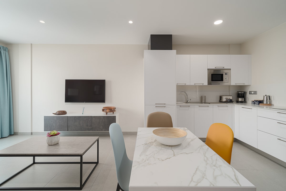 在這個平靜、時尚的海景空間、空調、免費Wi-Fi、免費盥洗用品、保險箱、雙人牀、毛巾和牀單中放鬆身心。 我們提供免費咖啡和茶、客廳有55英寸大電視,臥室有32英寸電視,可免費使用Netflix、Prime Video、迪士尼Plus、可收看世界各地頻道的IPTV、帶烘乾機的洗衣機和免費洗衣精、設備齊全的廚房、大冰箱和冰櫃、客廳的大沙發牀等。