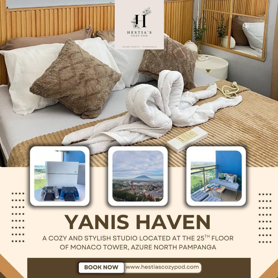 這個現代化、設備精良的單位非常適合尋找便利、舒適和輕鬆前往當地熱門景點的旅客。您將體驗到飯店氛圍,寬敞的陽台可俯瞰壯麗的山景。Arayat。您距離充滿活力的步行街、餐廳和酒吧僅幾步之遙。您也非常靠近SM Clark & Clark國際機場。一樓有一間便利商店(7/11)、咖啡店和酒吧。如需提升體驗,請嘗試屋頂甲板上的雲端酒吧。